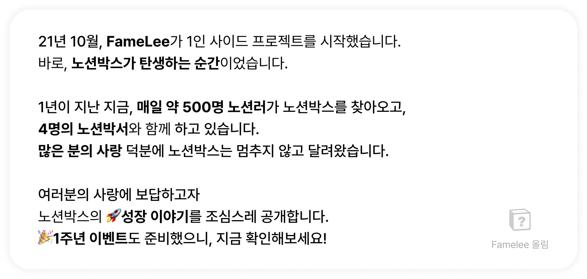 지난 1년 2개월 동안, 많은 분이 노션박스를 찾아와주셨습니다.