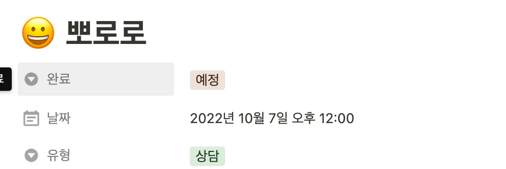 완료 여부, 날짜와 시간, 유형을 입력해주세요 :)