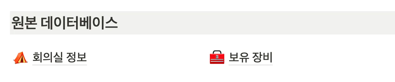 원본 데이터베이스 영역에서 회사 회의실 정보와 보유 장비 정보를 입력합니다
